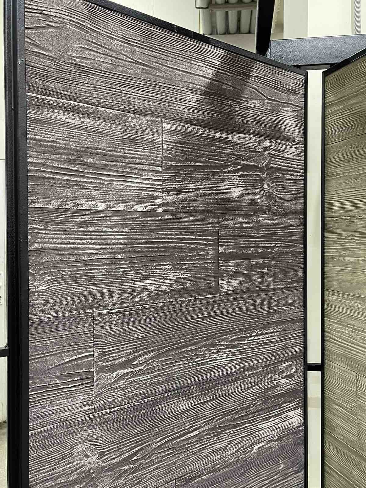 Это фактура брашированной древесины (состаренного дерева с рельефными годовыми кольцами), застывшая в акриле. Мы сняли слепки с натуральной доски силиконовыми формами, чтобы передать каждую прожилку и неровность. Визуально — это дорогая деревянная вагонка. Но состав совершенно другой.
